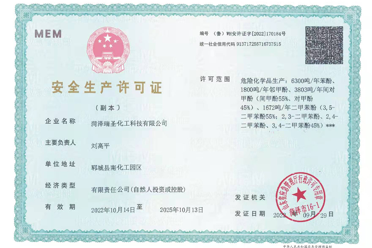 瑞圣化工資質(zhì)證書(shū)展示